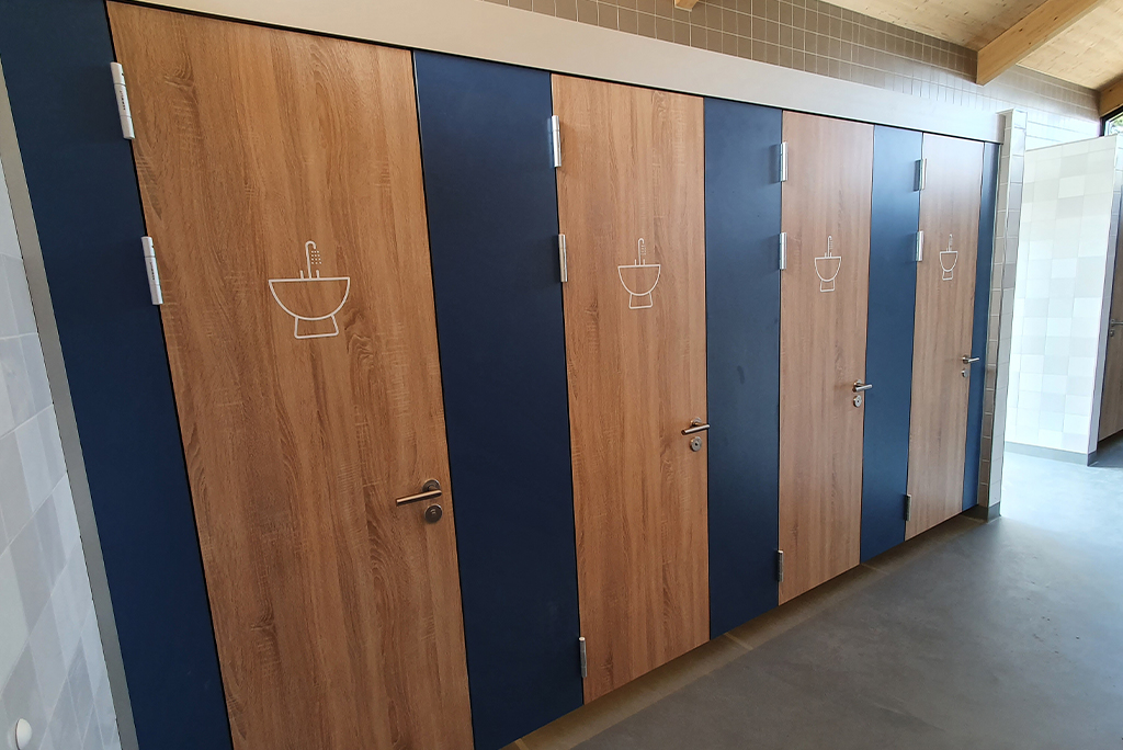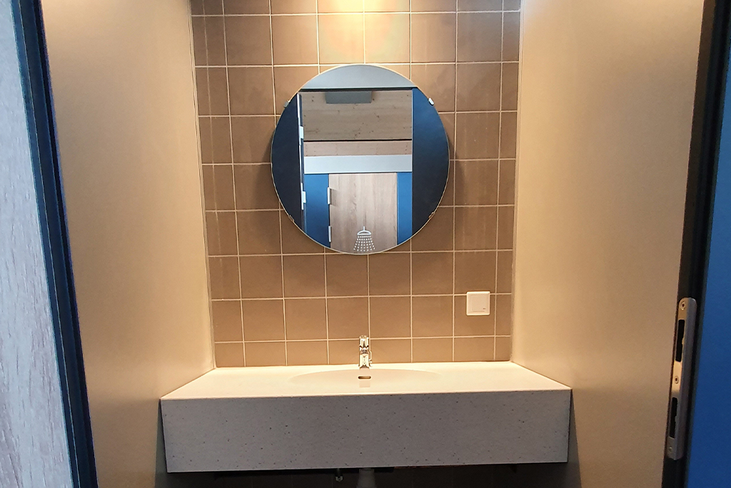 Voor Vakantiepark Delftse Hout te Delft heeft Sistim Nederland de sanitaire wanden, wastafelbladen en lichtkoven geleverd voor de nieuwbouw van het grote sanitair gebouw.